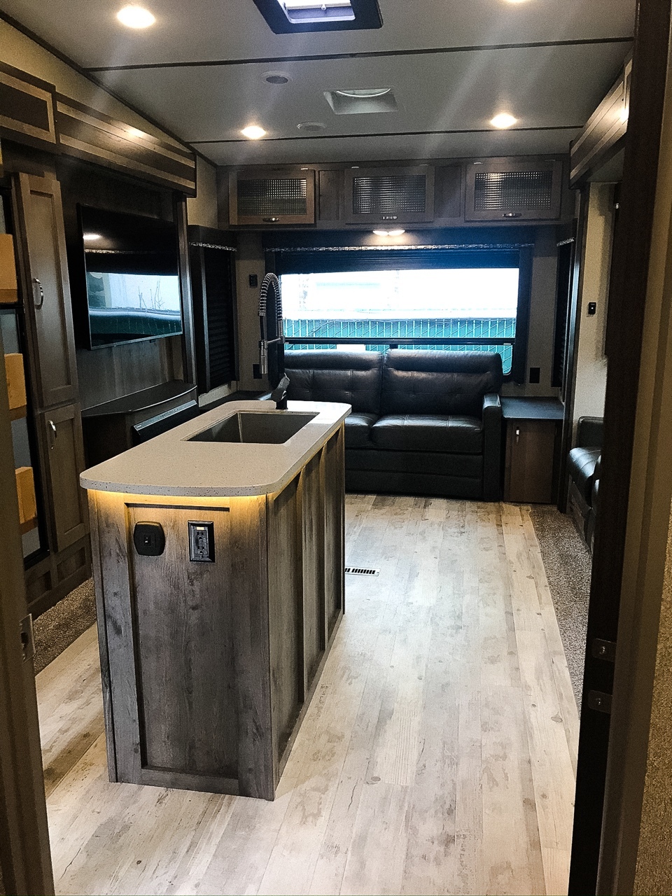 This fifth wheel is built a little differently than are previous fifth wheel. This trailer sleeps 9 and has 2 bedroom areas 2 bathrooms and a nice common are. 2018 columbus compass 377mb 2 bedroom luxury 5th wheel.